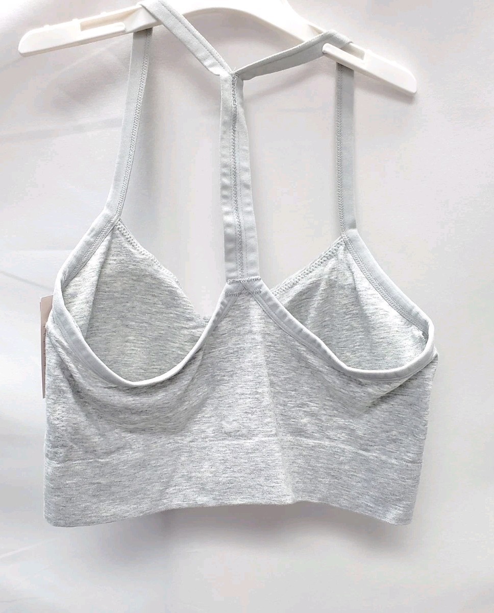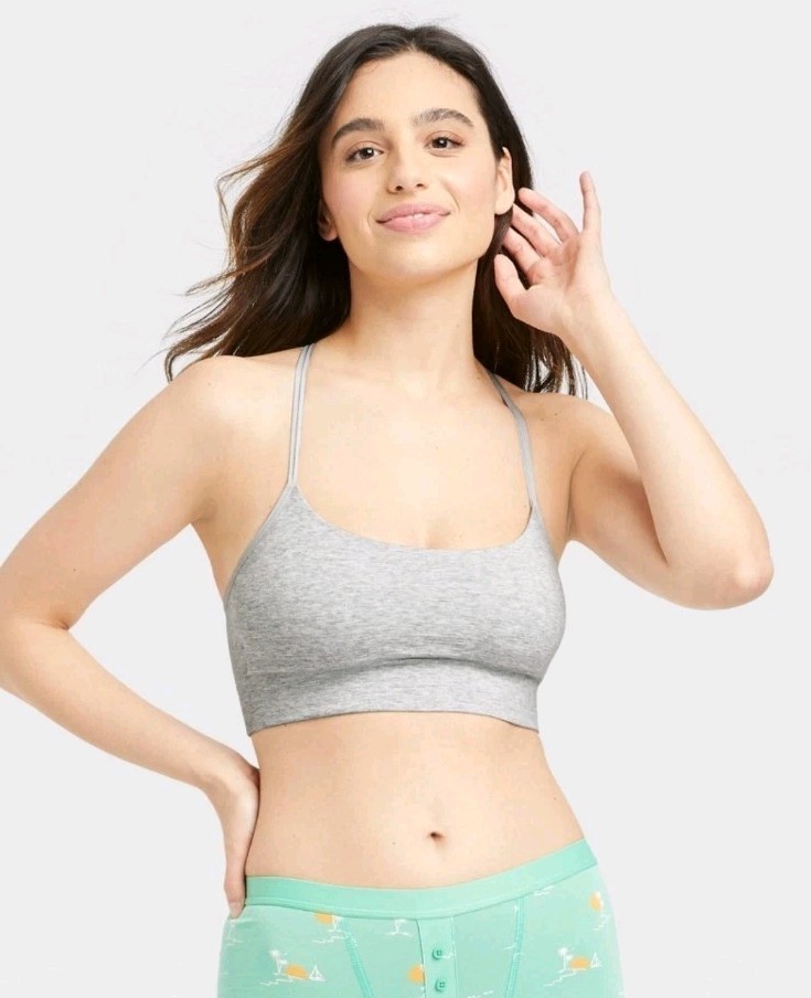 The Women's Cotton Seamless Bralette by Auden in Gray, Size Large, is a stylish and comfortable option for everyday wear. Made from a blend of spandex and cotton, this bralette features a racerback design and a pullover closure for easy wear. With a solid pattern and strap accents, this lightweight and breathable bra provides support and comfort in a flattering demi-cup style. Perfect for machine washing, this bralette is a practical and versatile addition to any woman's lingerie collection.