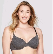 The Women's Cotton Lightly Lined Demi T-Shirt Bra by Auden in Dark Gray Heather size 36C is a comfortable and stylish choice for everyday wear. Made from a cotton blend material with underwired support, it features a hook & eye closure, adjustable straps, and lightly padded cups. The heathered pattern in a solid gray color adds a classic touch to this practical and versatile bra. Ideal for women looking for a reliable and supportive undergarment that provides comfort and shaping without sacrificing style.