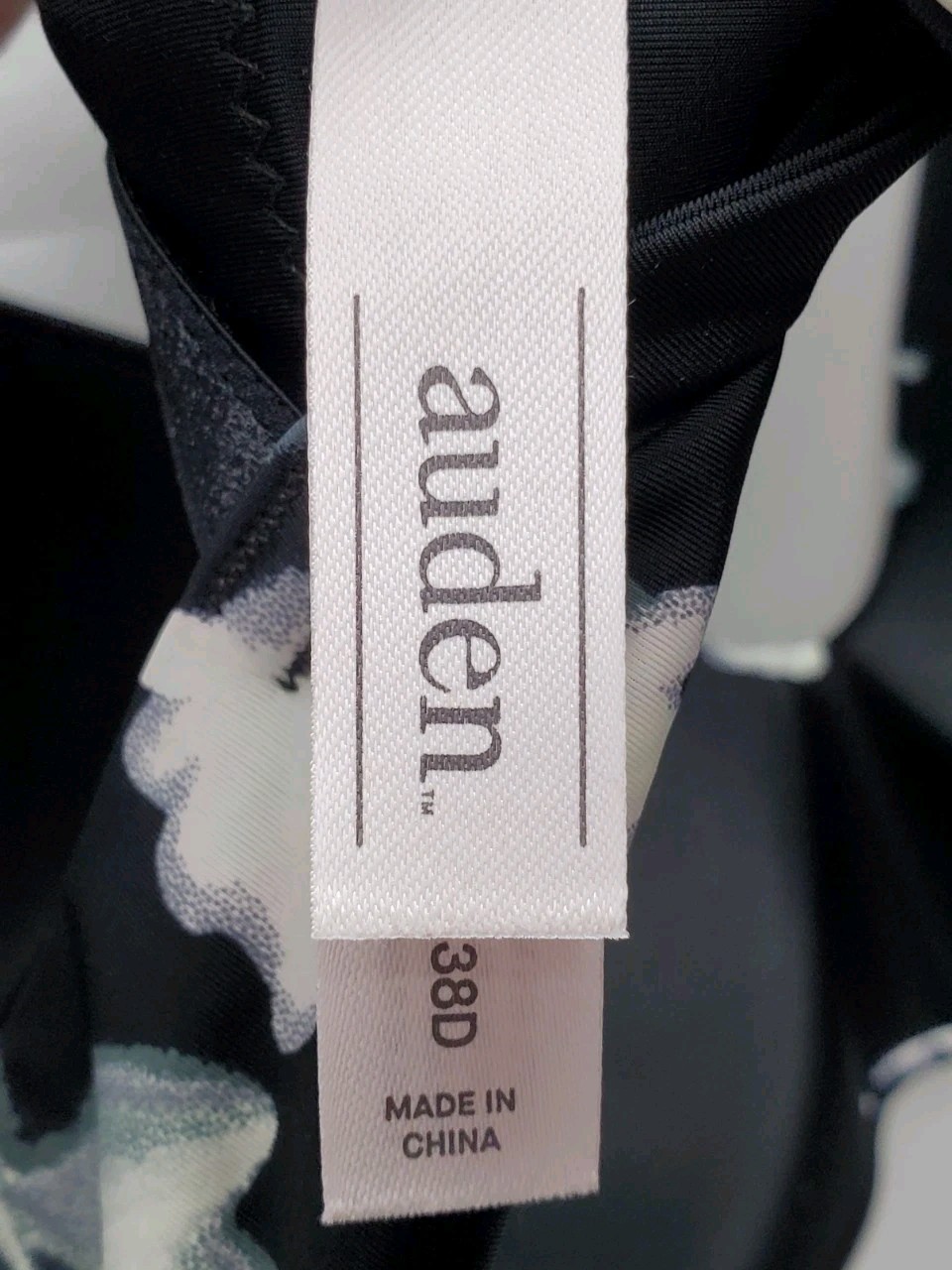 The Women's Black Size 38D Floral Print Bliss Lightly Lined Wirefree Bra by Auden is a stylish and comfortable choice for women. This bra features a floral pattern, multiway straps, and a hook & eye closure for a secure fit. Made from a nylon blend and spandex, this bra offers support and comfort without the wires. The black color and opaque fabric make it a versatile piece that can be worn everyday. With the Bliss brand and lightly lined design, this bra combines fashion and function for a great fit.