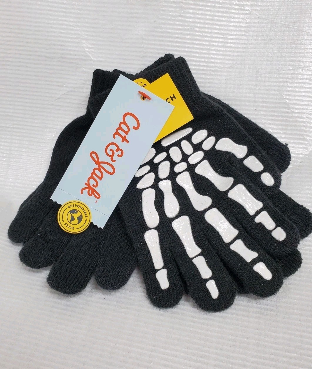 The Cat & Jack 2 Pack Tech Touch Skeleton Hand Gloves in Black are a stylish and fun addition to any child's wardrobe. Made of a polyester blend, these gloves feature a pull-on closure and a skeleton hand design, perfect for Halloween or any party. With tech-touch features, they are ideal for winter and fall activities, providing both warmth and functionality. Easy to care for with machine washable fabric, these gloves from the CAT brand are suitable for both boys and girls in one size fits most.