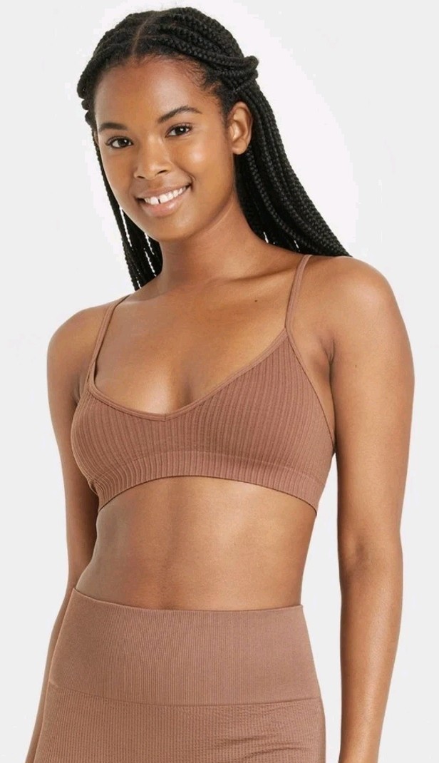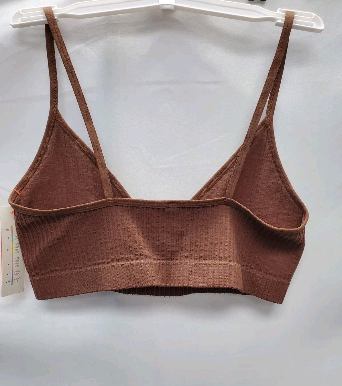 The Women's Triangle Bralette in Size Medium by Colsie in Brown is a stylish and comfortable choice for everyday wear. With a solid pattern, spaghetti strap style, and pullover closure, this bralette offers a seamless stretch fit. Made from a blend of nylon and spandex, this wireless bra is machine washable and perfect for the B-C cup size range. Ideal for women looking for a versatile and supportive undergarment with a touch of style.
