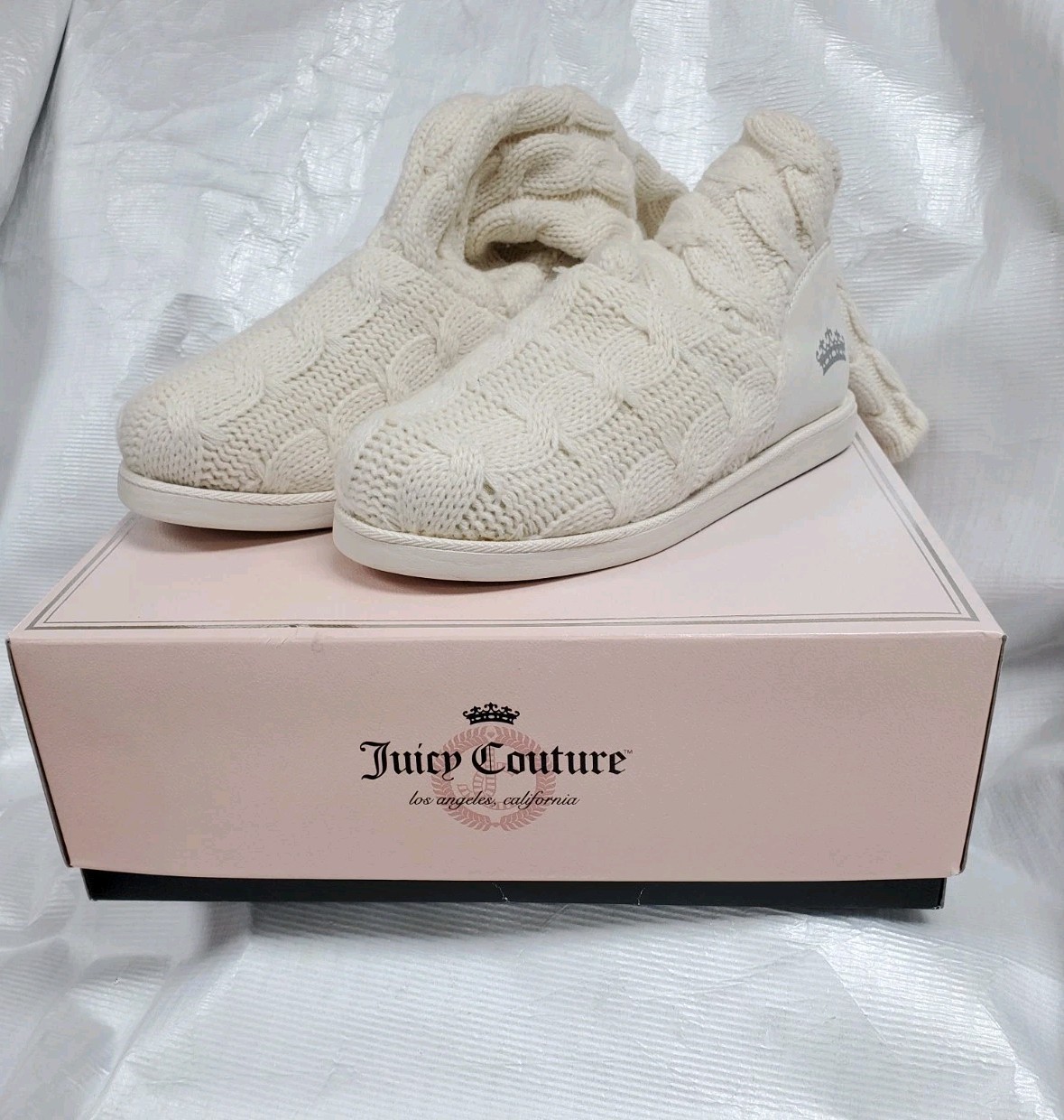 The Juicy Couture Women's Marlin Sweater Boots in size 9.5 White are a stylish and cozy choice for any woman. Made with faux fur lining and knit fabric, these flat boots feature a pull-on closure for easy wear. The marlin white color adds a unique touch to the design, making them stand out from the crowd. With a comfortable flat heel and rubber outsole, these boots are perfect for everyday wear and can be personalized with the signature Juicy Couture brand.