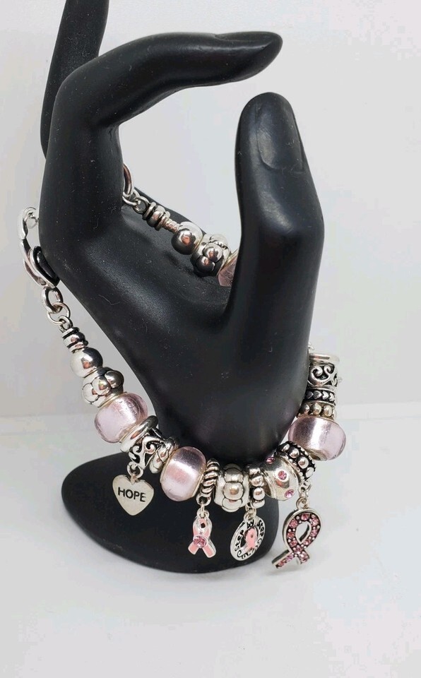 The Landau Breast Cancer Awareness Bracelet is a stylish and elegant piece of jewelry designed to raise awareness for the cause. The silver bracelet features a charming design with a pink main stone made of glass, symbolizing the fight against breast cancer. The lobster closure ensures a secure fit, making it a meaningful accessory to wear in support of breast cancer awareness.