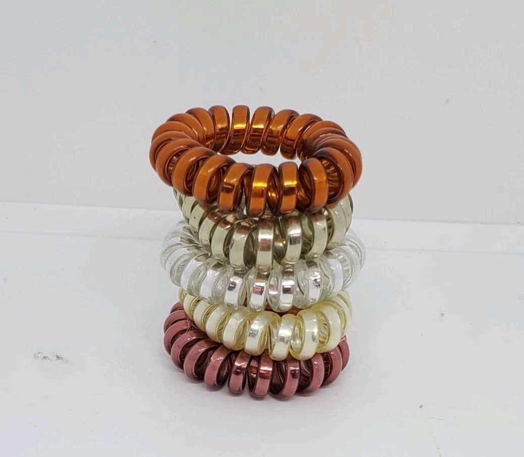 The Spiral Hair Ties 20 pack in assorted colors such as silver, copper, and more are a stylish accessory for women. Made from high-quality materials like copper, these colorful hair ties are durable and long-lasting. The spiral design adds a unique touch, making these hair ties stand out while keeping your hair secure and in place. Perfect for adding a pop of color to your everyday look or for a special occasion.