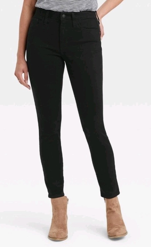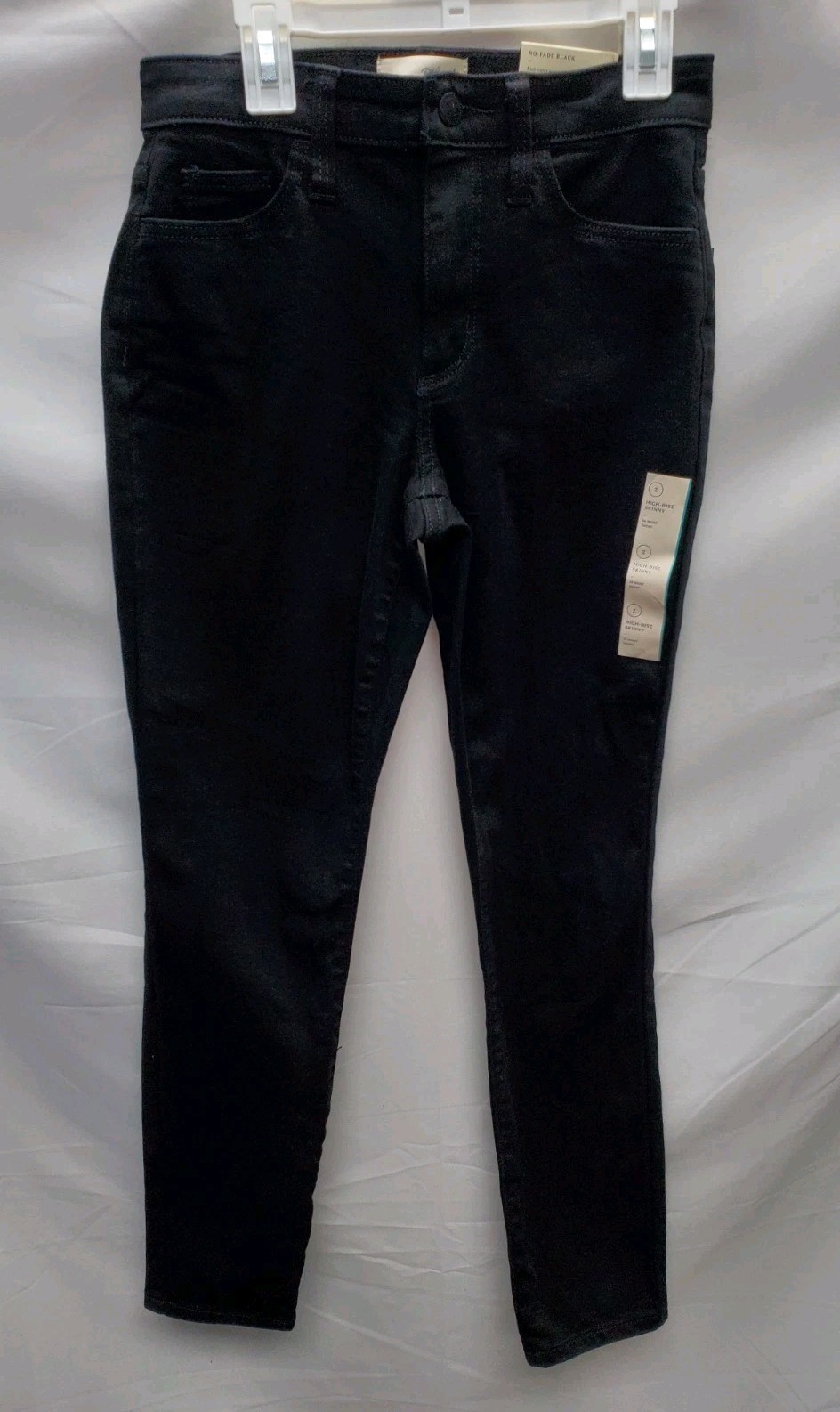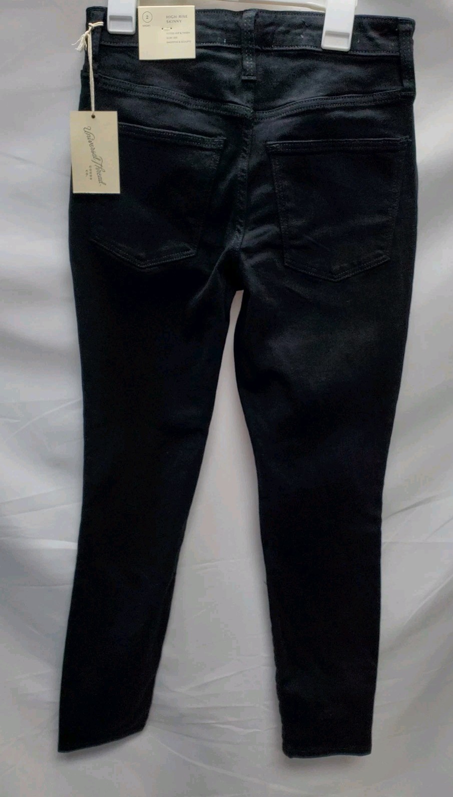 The Universal Thread Women's Size 2 High Rise Skinny Jeans in black are a stylish and versatile addition to any woman's wardrobe. Made with a dark wash denim fabric, these jeans feature a slim fit and high rise waist, creating a flattering silhouette. The zipper closure and pockets add practicality to the sleek design, while the stretch feature ensures comfort and ease of movement. Perfect for everyday wear or dressing up, these jeans from Universal Thread are a must-have for the modern woman.