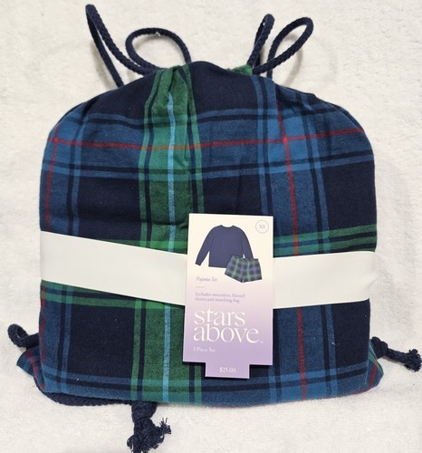 Women's XS Stars Above Flannel Plaid Pajama Set Shorts, Long Sleeve